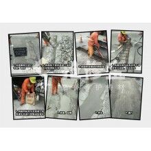 伸縮縫錨固區(qū)混凝土病害的維修應在病害初期采用開裂灌膠、碎塊重鑄、保持行車平順等諸多預養(yǎng)護手段,這樣就避免后期擴大維修規(guī)模、成本和難度。當后期出現(xiàn)大規(guī)模開鑿重新澆筑時,在鋼筋重植和斷筋搭接上,應嚴格按植筋、搭接規(guī)范執(zhí)行;在混凝土修補材料選材上應盡量縮短封閉交通的時間,可采用西安瑞泰新材料有限公司生產的搶修寶RT-2快速修補材料,是一款新型的道路、橋梁伸縮縫修補材料,此材料是由特種水泥、功能性添加劑、高、強纖維及精選骨料組成。具有快凝高、強,后期強度不倒縮;不收縮、微膨脹和粘接性能;能在短時間內開放交通(2-4小時)且施工工藝簡單,不影響交通通行。