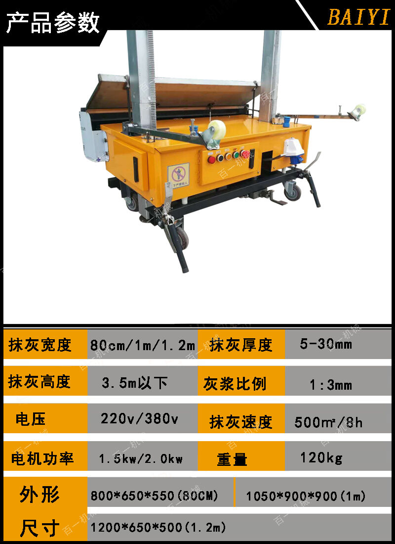 1 自動(dòng)抹灰、自動(dòng)升降、一次性成型,厚薄可調(diào),無落地灰。