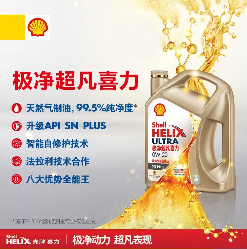 歸屬行業(yè):殼牌(Shell)新升級(jí) 金裝極凈超凡喜力天然氣全合成機(jī)油Helix Ultra 0W-40 SN PLUS級(jí) 6L組合裝