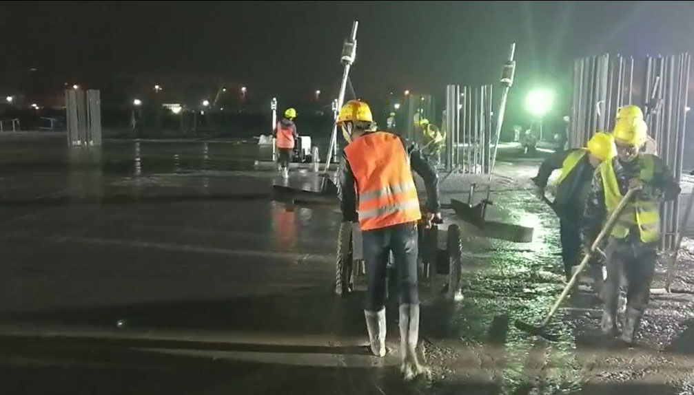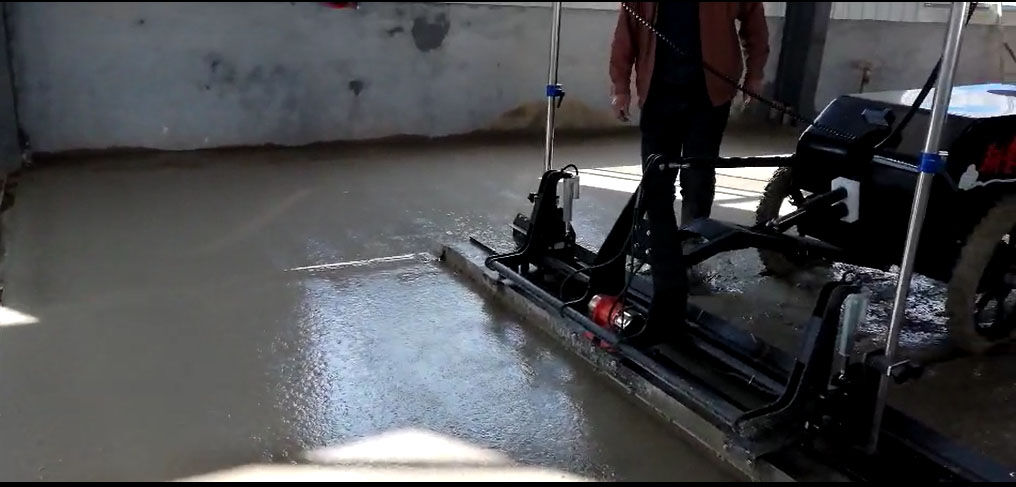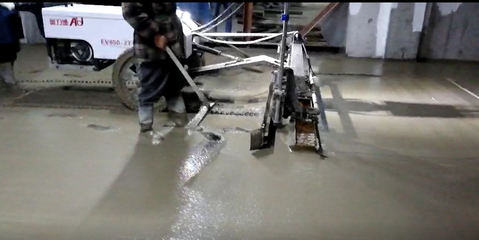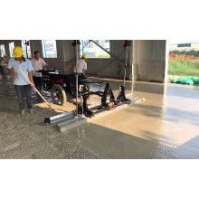 混凝土激光攤鋪機是用刮板將高出的混凝土帶走并初步刮平,達(dá)到設(shè)計要求的標(biāo)高。液壓驅(qū)動振動馬達(dá)產(chǎn)生震動,頻率為4000次/分鐘,帶動整個振動板一起對混凝土產(chǎn)生振搗。激光攤鋪機找平不需要拉控制線,也不需要支側(cè)模板來控制地面標(biāo)高,而由攤鋪機上的激光測控系統(tǒng)實時控制,只要激光發(fā)射器不受干擾,無論攤鋪機移動到哪里,都能確保鋪筑后的地面整體上的標(biāo)高不受影響。