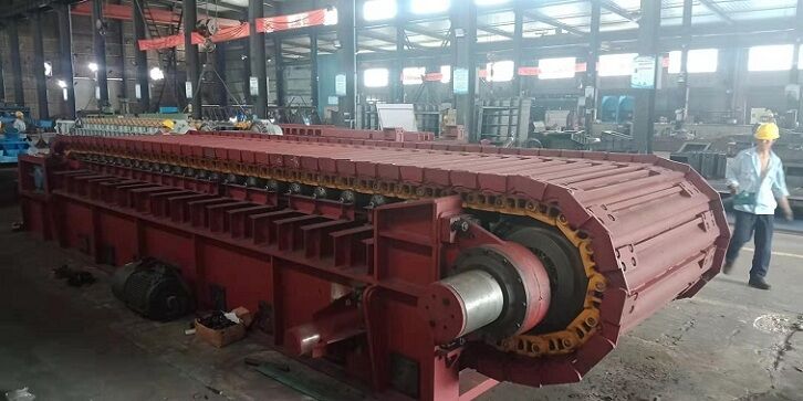 5、頭尾輪應采用優(yōu)質鑄鋼件并經良好的熱處理,應帶有張緊裝置。喂料倉與板喂機之間應設有溜槽,板喂機帶支架和支腿。