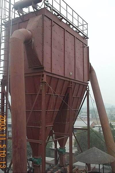 含塵氣體由進(jìn)氣口進(jìn)入灰斗經(jīng)容積式分離后進(jìn)入濾袋式(或通過敞開法蘭口直接進(jìn)入濾袋室),較粗顆粒落入灰斗或灰倉,含塵氣體透過濾袋過濾為凈化氣體后進(jìn)入凈氣室,再經(jīng)凈氣室排氣口由風(fēng)機(jī)排出。粉塵積附在濾袋的外面,且不斷增加,使袋式除塵器的阻力不斷上升,為使設(shè)備阻力不超過1200Pa,袋式除塵器能繼續(xù)工作,需定期清除濾袋上的粉塵。清灰時由脈沖程序控制儀定時按程序起動各脈沖閥,使分氣包內(nèi)的壓縮空氣(氣壓0.5~0.7MPa)由噴吹管孔眼噴出(稱一次風(fēng)),通過文氏管誘導(dǎo)數(shù)倍于一次風(fēng)的周圍空氣(稱二次風(fēng))進(jìn)入濾袋,使濾袋在瞬間急劇膨脹,并伴隨著氣流的反向作用抖落積附在濾袋外表的粉塵,達(dá)到清灰的目的。