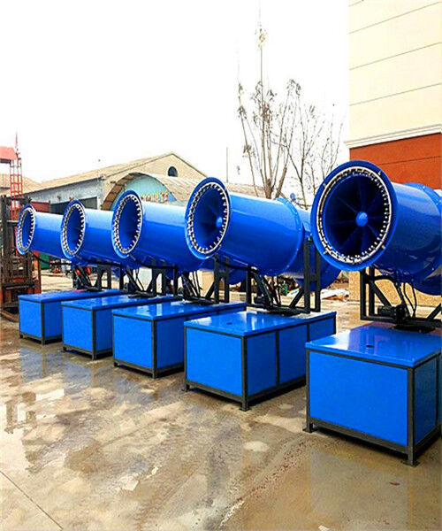 除塵噴霧炮是根據送風原理,先使用進口高壓泵、微細霧化噴嘴將水霧化,利用風機風量和風壓將霧化后的水霧送到較遠距離,使得水霧到達較遠距離能夠覆蓋大面積,水霧與粉塵凝結后降落,從而達到降塵目的。