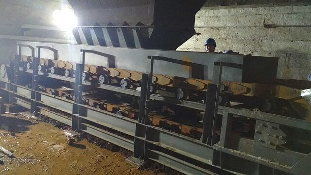 2)第二種方法。在板式給料機下面懸掛一條刮板輸送機,漏料通過刮板輸送機的漏斗給到帶式輸送機上。