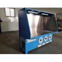 打磨是指在涂裝的過程中,用砂紙、浮石、細(xì)石粉等摩擦介質(zhì)摩擦被涂物或涂膜表面,一般是手工作業(yè),也可用風(fēng)動(dòng)或電動(dòng)器械進(jìn)行。拋光近似于打磨,區(qū)別在于使用的磨料粗細(xì),號(hào)越小,粒度越細(xì);號(hào)越大,力度越粗。打磨拋光中,一般采用水磨、先用800#~1000#的砂紙磨去亮星,再用1500#砂紙輕磨砂痕。不管是手動(dòng)打磨還是電動(dòng)打磨,在打磨的過程中總會(huì)有打磨粉塵出現(xiàn),這些粉塵的粒徑很小,容易懸浮在空氣中,若被人體吸入身體會(huì)很大的損害身體健康。打磨除塵工作臺(tái)是一種集工作臺(tái)與除塵器為一體的工業(yè)環(huán)保設(shè)備。在不干涉工人日常作業(yè)的前提下,除塵工作臺(tái)可有效捕集懸浮的細(xì)小塵埃。并且除塵工作臺(tái)可與專門的煙塵凈化器連接,達(dá)到更高的除塵效果,給工人提供潔凈健康的工作環(huán)境。