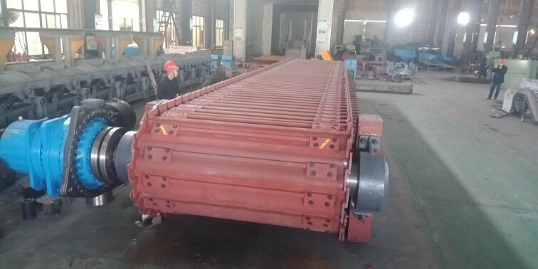 鏈板全部采用16Mn鋼板制作,厚度16-25mm。采用單圓弧搭接結(jié)構(gòu)形式,工作時始終處于相互搭接狀態(tài),抗沖擊、耐磨損、鏈板之間不漏料,安全可靠。每個鏈板兩側(cè)邊采用導(dǎo)向板定位,