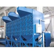 在正常運行時,如:重力、慣性力、碰撞、靜電吸附,篩濾作用等。含塵空氣由頂部入口進入濾筒式除塵器,較大的粉塵顆粒因截面積增大,風速下降而提高直接沉降,較小的煙塵粉塵顆粒通過濾筒。粉塵被捕集在過濾筒外邊,清潔空氣則經(jīng)由濾筒中心進入清潔空氣室,再經(jīng)出口由引風機排出。隨著過濾不斷進行,濾筒表面的煙塵粉塵越積越多,阻力不斷升高,及至濾筒清灰時,固態(tài)控制將操縱電磁閥以打開一個空氣隔膜閥,于是高壓空氣便直接沖入所選濾筒中心,把捕集在濾件表面上的粉塵吹掃一清,使濾筒再生。粉塵則隨主氣流所趨,并在重力的作用下向下落入塵斗中。周而復(fù)始,連續(xù)過濾,使設(shè)備連續(xù)進行得到保障。