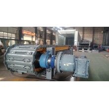 該裝置為直交軸支點浮動式,主軸套裝在行星減慢速器的輸出軸內(nèi),通過瑣緊盤將兩者聯(lián)接起來,其特點是懸掛無基礎(chǔ),重量輕,速比大,由于采用支點浮動式,減少了安裝誤差及支座引起的附加彎矩,提高了傳軸的使用壽命,拆裝及維修方便。