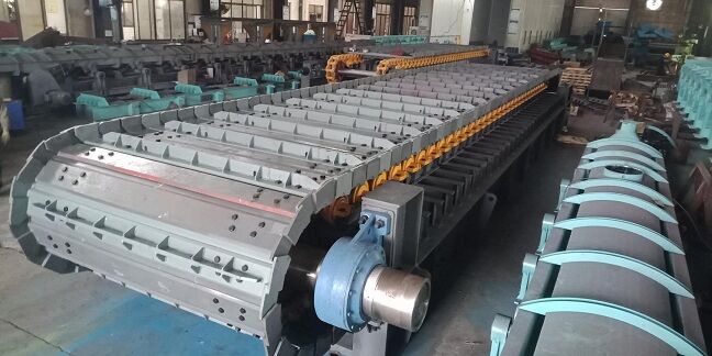 (3)輥體通過卡鍵定位在通軸上,并鎖緊,輥體長(zhǎng)度與負(fù)荷槽板上固定運(yùn)轉(zhuǎn)鏈條的加厚槽板等長(zhǎng)并對(duì)應(yīng),支承回程槽板負(fù)荷。