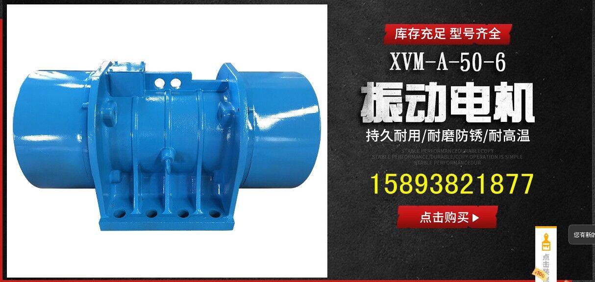 XVM-A系列振動源三相異步電動機集動力源和振動源為一體,是一種高效節(jié)能的通用性激振源,體積小,激振力大,結構可靠,使用維護方便,簡稱振動電機。其它名稱:,震打電機。本系列產(chǎn)品廣泛應用于礦山、煤炭、電力、化工、糧食加工、冶金、鑄造、輕工、醫(yī)藥等行業(yè)。是實現(xiàn)粉狀、粒狀、塊狀等散體料機械化篩分、輸送、破碎、充填、防堵塞的理想激振源。本機可單機使用,也可多機組合使用。 1、振動電機使用條件 本系列振動電機滿足下列條件時,能連續(xù)輸出額定激振力。 (1) 振動加速度:不超過7g(g:重力加速度) (2) 環(huán)境溫度:不超過40℃ (3) 海拔:不超過1000m (4) 電源頻率:50HZ (5) 電壓:380v (6) 溫升:小于80K(電阻法) 2、振動電機型號說明 (1) XVM-A系列產(chǎn)品型號由三部分組成(如下示例) XVM-A 5-4 XVM-A---振動電機 5---*大激振力(千牛頓) 4---極數(shù) (2)XVML系列表示立式安裝振動電機。