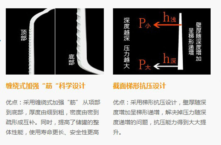 5、久佳儲罐加強筋加厚超耐用,圓柱形桶身有強肋線,符合高強度-重量比,優(yōu)異的抗疲勞強度,有足夠的壁厚,優(yōu)質的原料,更多投料/更厚桶身,使用壽命從常規(guī)級別的15年提升至20年.