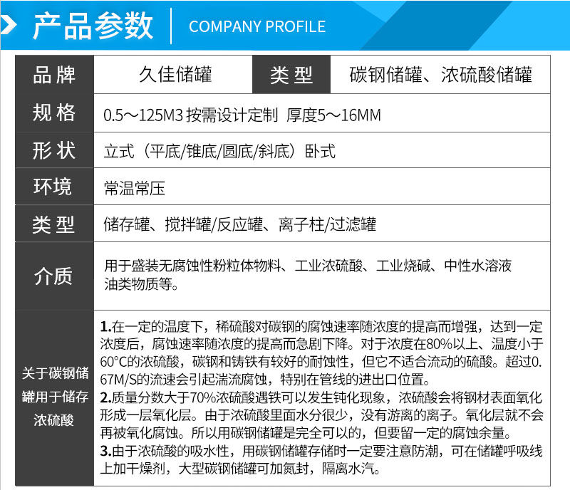 產(chǎn)品:碳鋼儲罐、濃硫酸儲罐