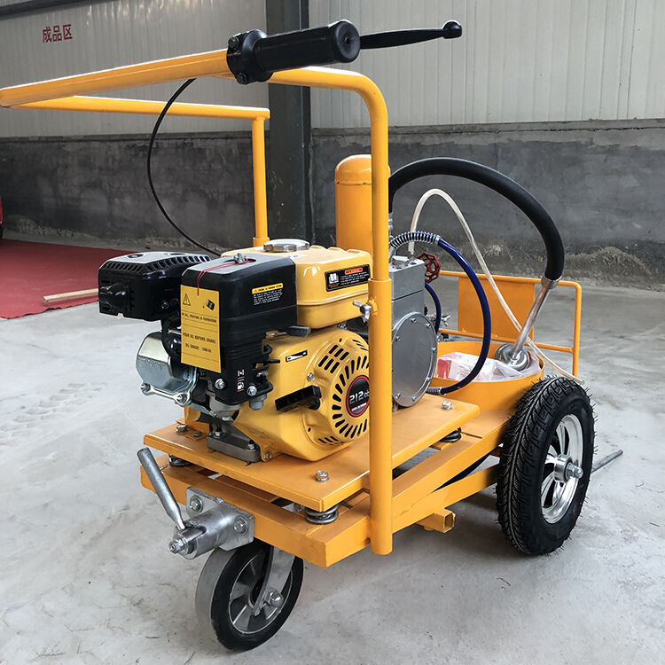 冷噴(冷漆)劃線機(jī):冷噴劃線是一種歷史最為悠久的一種常規(guī)型劃線,該類劃線一般由一臺(tái)常溫劃線機(jī)即可完成施工。冷噴劃線機(jī)按照其劃線方式不同可分為高壓無(wú)氣型、低壓空氣輔助型等兩個(gè)類型;按照其所使適用涂料的種類不同又分為常溫熔劑型、常溫水性及加熱溶劑型三個(gè)類型(廣義的常溫標(biāo)線機(jī)械也包括雙組份型,尤其是雙組份噴涂型,它是一種兼具常規(guī)常溫涂料及雙組份涂料噴涂功能的廣譜型劃線機(jī)),如下圖手推式高壓無(wú)氣冷噴劃線機(jī)