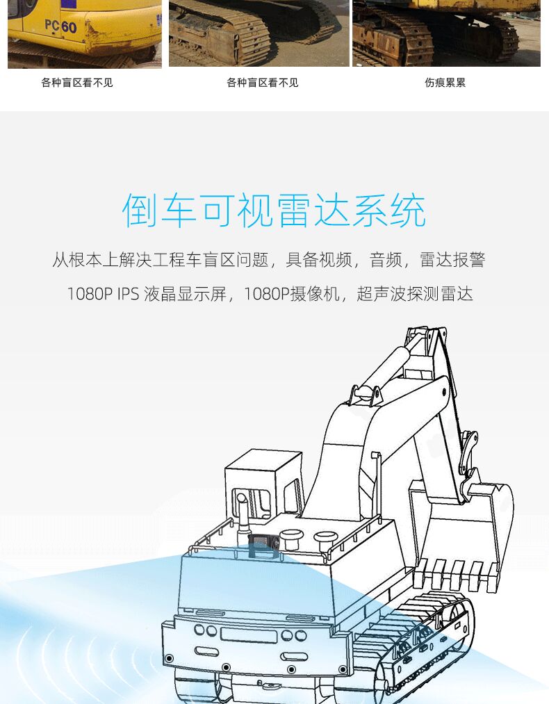 挖掘機倒車雷達 高清夜視紅外影像報警提示系統(tǒng)