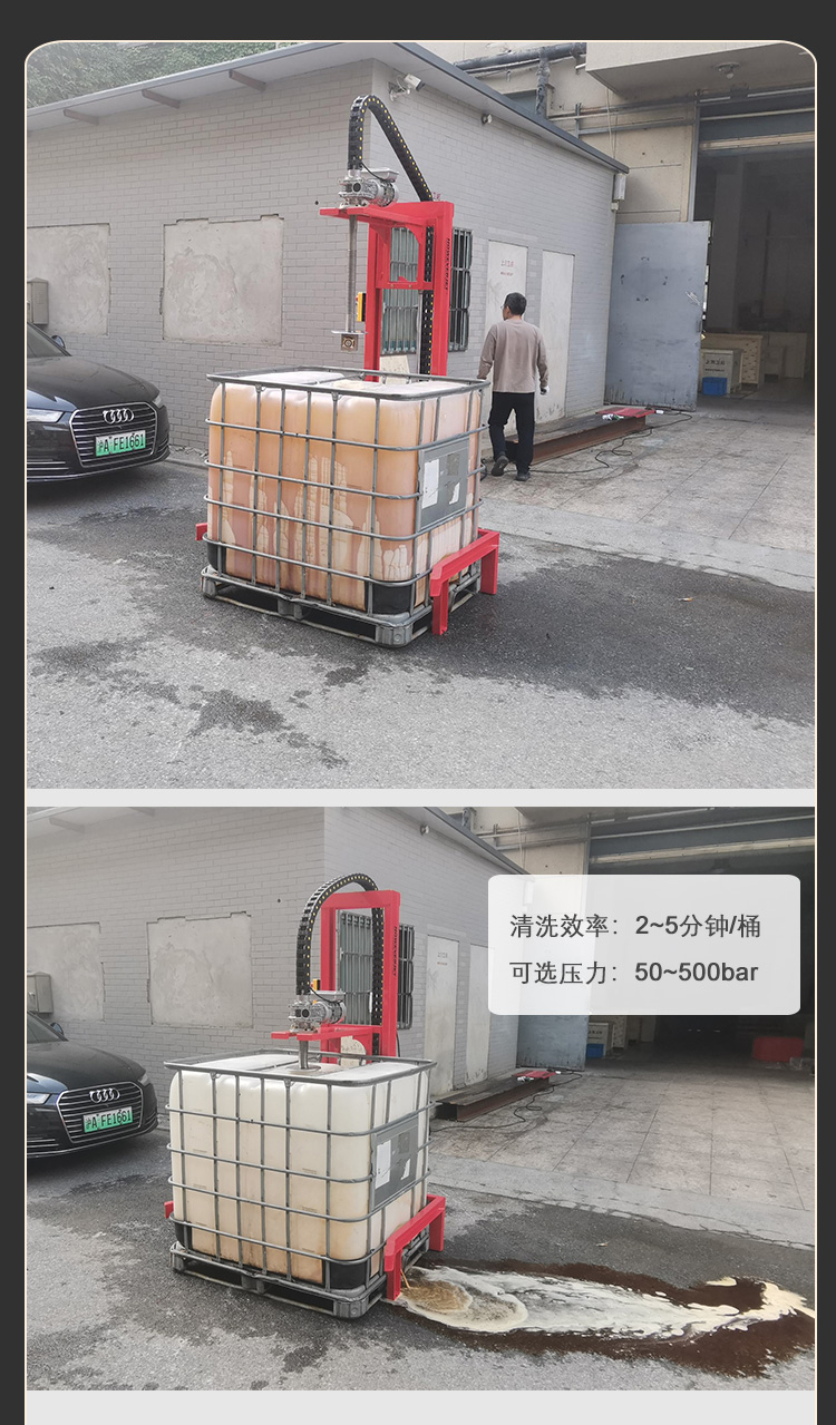 7、原料化工桶清洗設(shè)備可選配5-500公斤清洗壓力,解決各種工況的清洗問題