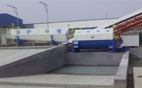 該系統(tǒng)主要由:攪拌車(chē)加水清洗裝置,溜槽輸送裝置,砂石漿水分離裝置,和泥漿水后處理裝置組成?;炷凛斔驮O(shè)備清洗后,將殘余混凝土排入溜槽中,在高壓水流沖擊下,經(jīng)溜槽進(jìn)入砂石分離機(jī),在不斷旋轉(zhuǎn)的分離機(jī)作用下,對(duì)混凝土進(jìn)行充分的清洗,同時(shí)將砂、石進(jìn)行分離,分離后的砂、石在導(dǎo)料葉片的作用下背向流動(dòng),再通過(guò)提升式出料口排出分離機(jī),分別堆放。清洗后的漿水從分離機(jī)的底部排出進(jìn)入沉淀池逐級(jí)沉淀后循環(huán)使用或進(jìn)入攪拌池回收利用。進(jìn)入攪拌池(一般情況2個(gè)攪拌池)的漿水為了防止沉淀凝固,需通過(guò)攪拌器的作用,攪拌器的工作為間歇式。分離出水泥漿在連續(xù)的攪拌器作用下,再通過(guò)高壓污水泵輸送到攪拌樓中待生產(chǎn)計(jì)量再利用。整個(gè)控制系統(tǒng)設(shè)有手動(dòng)和自動(dòng)控制,方便控制設(shè)置,整個(gè)系統(tǒng)運(yùn)行可靠,故障率低,維護(hù)量少等特點(diǎn)。