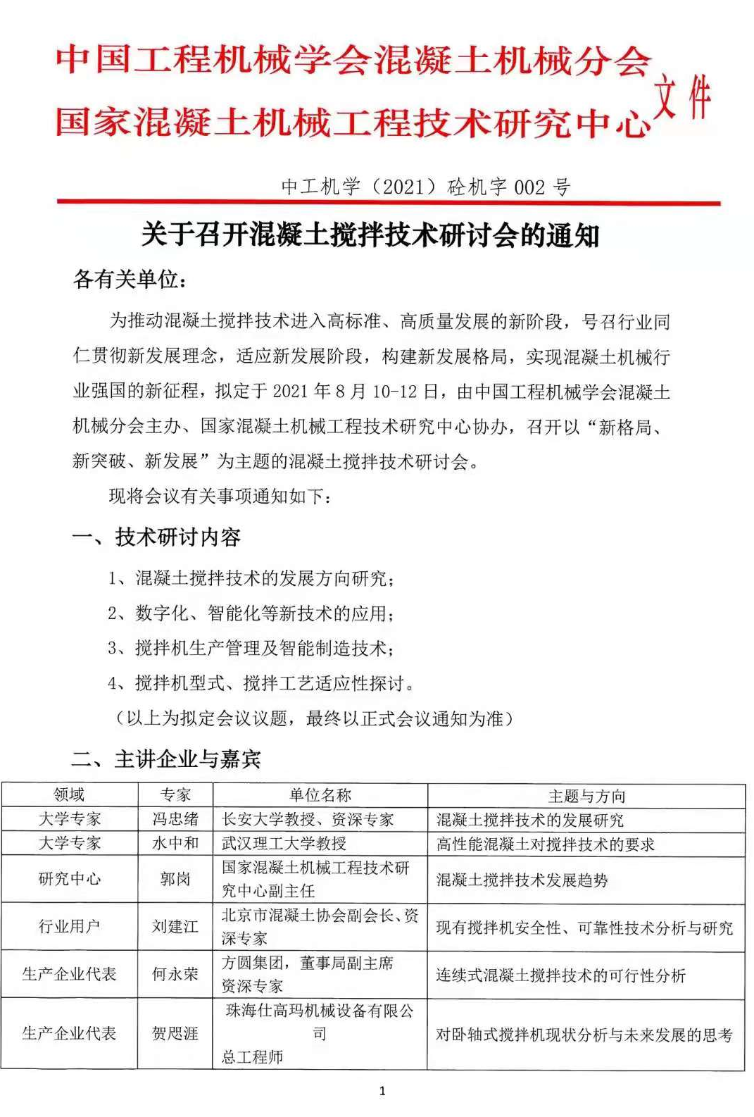 【通知】關(guān)于召開混凝土攪拌技術(shù)研討會(huì)的通知
