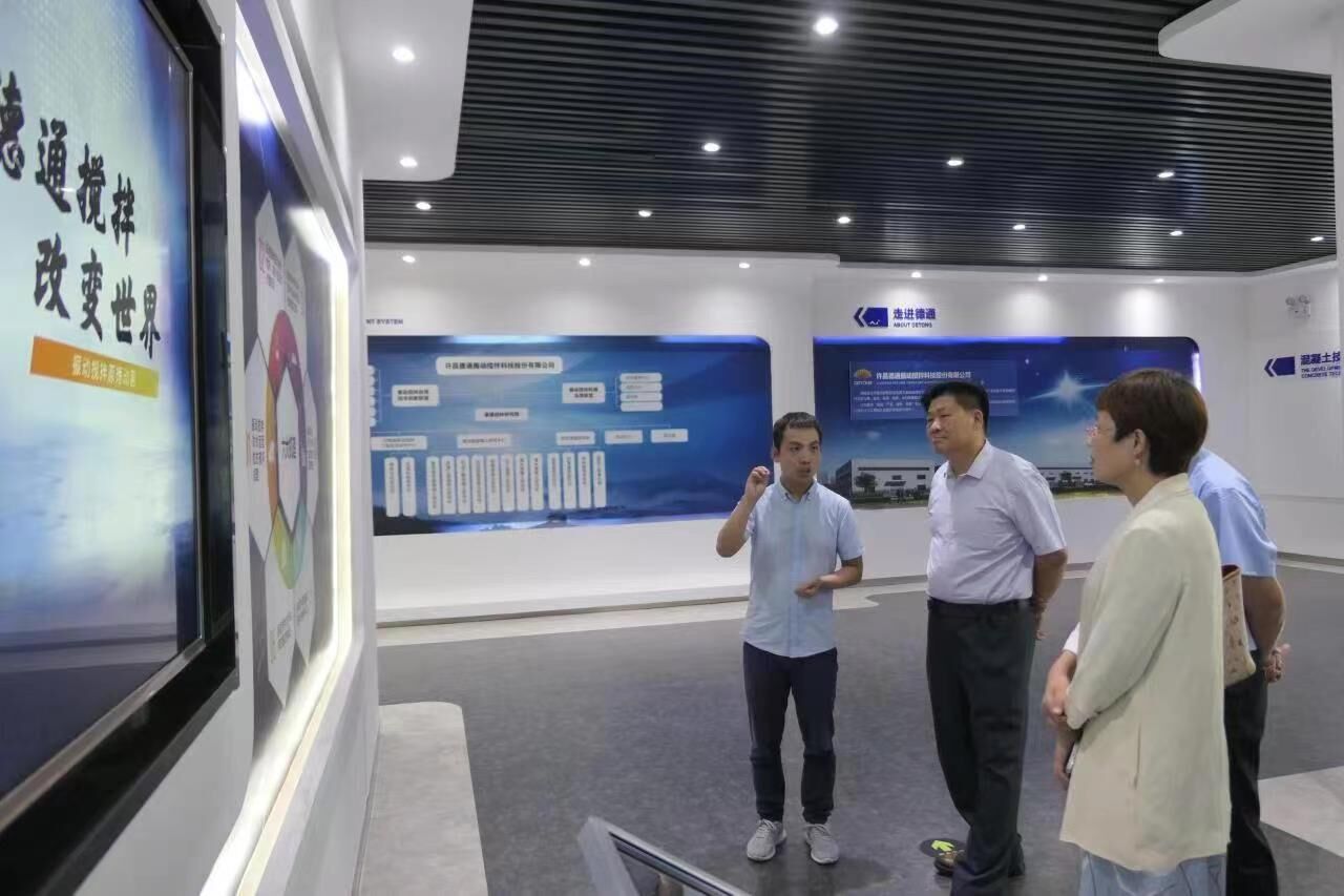 公司副總經(jīng)理孔鮮寧等陪同符忠軒會長一行參觀德通多媒體展廳,匯報振動攪拌技術研發(fā)及應用成果。