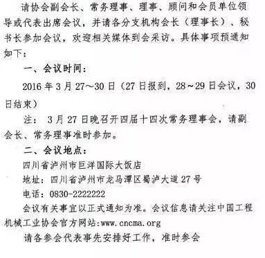 中國工程機(jī)械工業(yè)協(xié)會(huì)第五屆會(huì)員代表大會(huì)暨第十四屆工程機(jī)械發(fā)展高層論壇茲定于2016年3月27日~30日在四川瀘州召開。