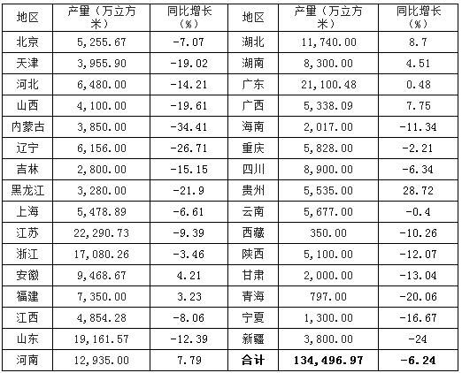 表2. 2015年全國商品混凝土產(chǎn)量分省市統(tǒng)計表
